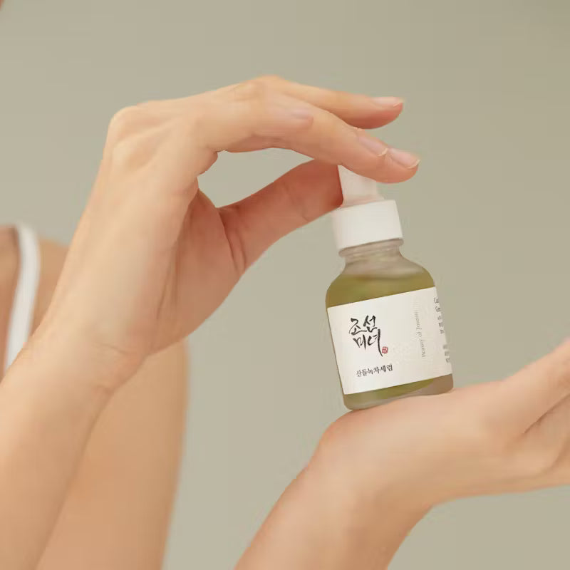 O Beauty of Joseon Calming Serum Green Tea + Panthenol é um sérum calmante enriquecido com 76% de extrato de chá verde, 2% de pantenol e vitamina C, formulado para acalmar a pele sensível ou danificada, proporcionando hidratação intensa, efeito antienvelhecimento e luminosidade. Ajuda a restaurar uma pele clara, saudável e com aparência jovem.
